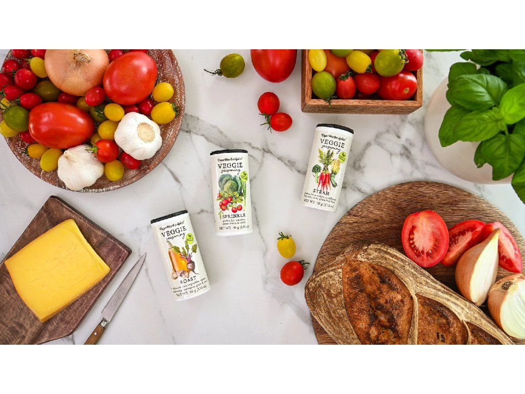 Složení: himalájská růžová sůl (26%), kukuřičná strouhanka, (pšeničná mouka [lepek]), česnek (10%), cibule, kokosový cukr (8%), rozmarýn (7%), tymián (7%), žlutá hořčice (7%), paprika, pepř černý, semena hnědé hořčice (3%), protispékavá látka (E551), bobkový list, muškátový oříšek, skořice. Není ošetřeno ionizujícím zářením.